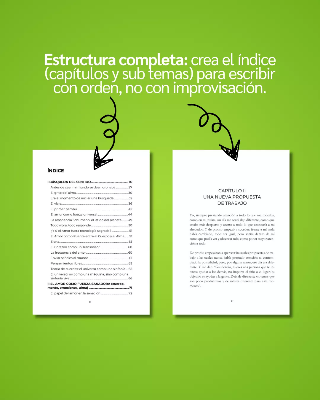 Definirás el corazón del libro, tu lector ideal y el mapa completo de capítulos.